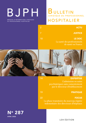 La nouvelle revue, le Bulletin juridique du professionnel hospitalier (BJPH), garde comme ligne éditoriale l’ambition de partager une information juridique d’actualité, commentée par nos auteurs, professionnels experts dans le domaine du pilotage managérial et organisationnel médical et non médical.